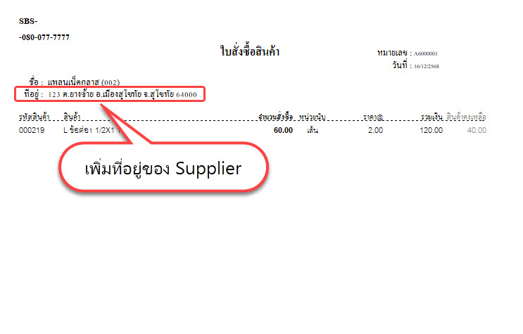 เพิ่มที่อยู่ suplier ในใบสั่งซื้อ