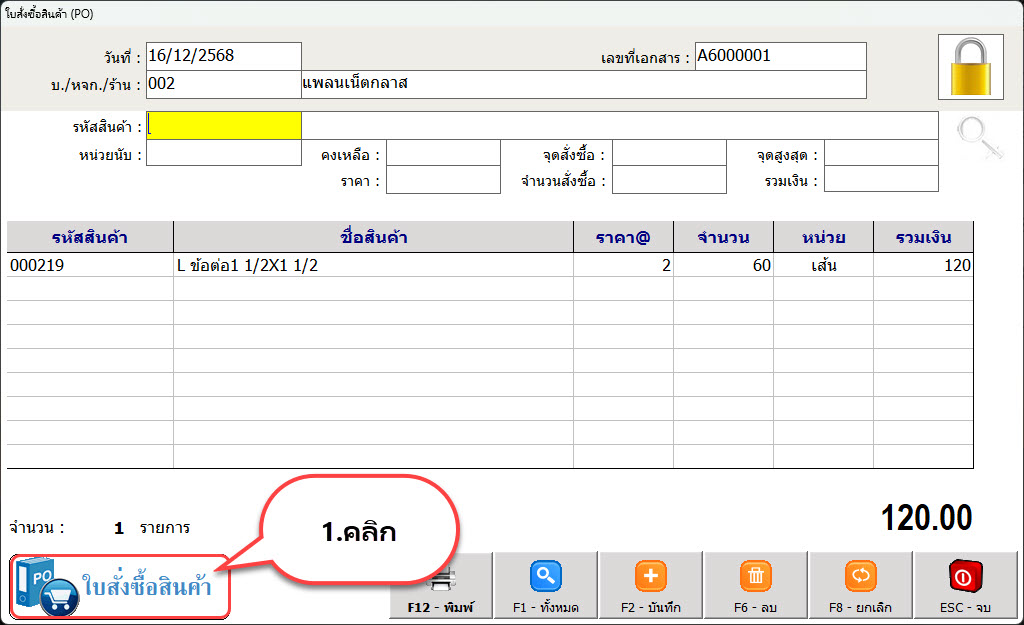 — โดยที่คีย์จำนวนของสินค้าก่อน และกด F10ที่คีย์บอร์ด เพื่อนคียน้ำหนักของสินค้าและราคาต่อหน่วย — ดังภาพที่แสดงต่อไปนี้