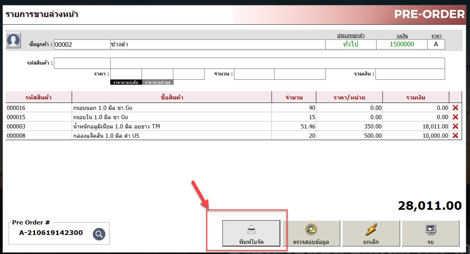 ปรับเพิ่มใบจัดสินค้าในหน้า pre-order
