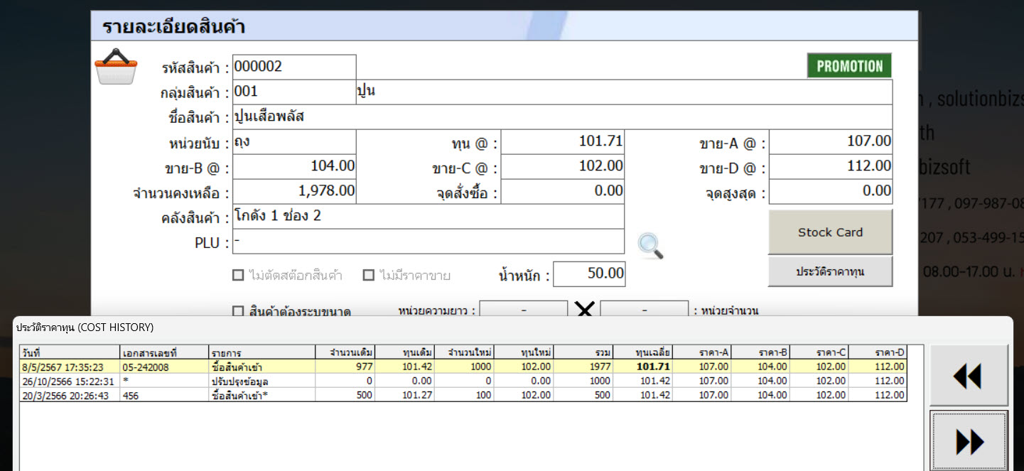 เพื่อค้นประวัติซื้อ ให้ตรวจประวัติต้นทุน