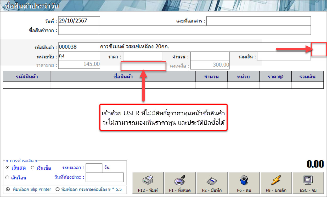ปรับระบบเพิ่มสิทธิ์พนักงานจัดซื้อดูราคาต้นทุนที่หน้าซื้อสินค้าได้