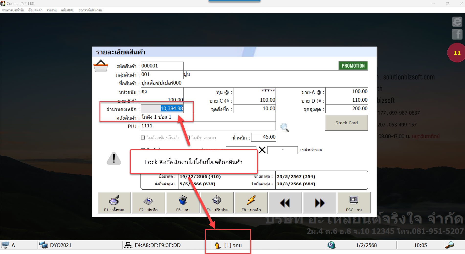 เพิ่มการล็อคสิทธิ์พนักงานแก้ไขสต็อกในหน้าข้อมูลหลัก